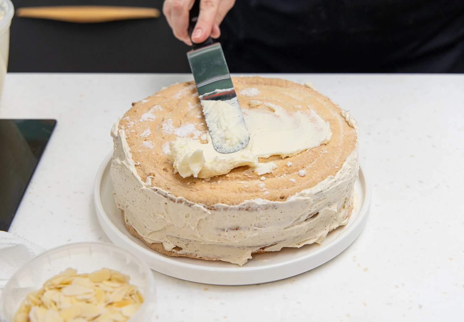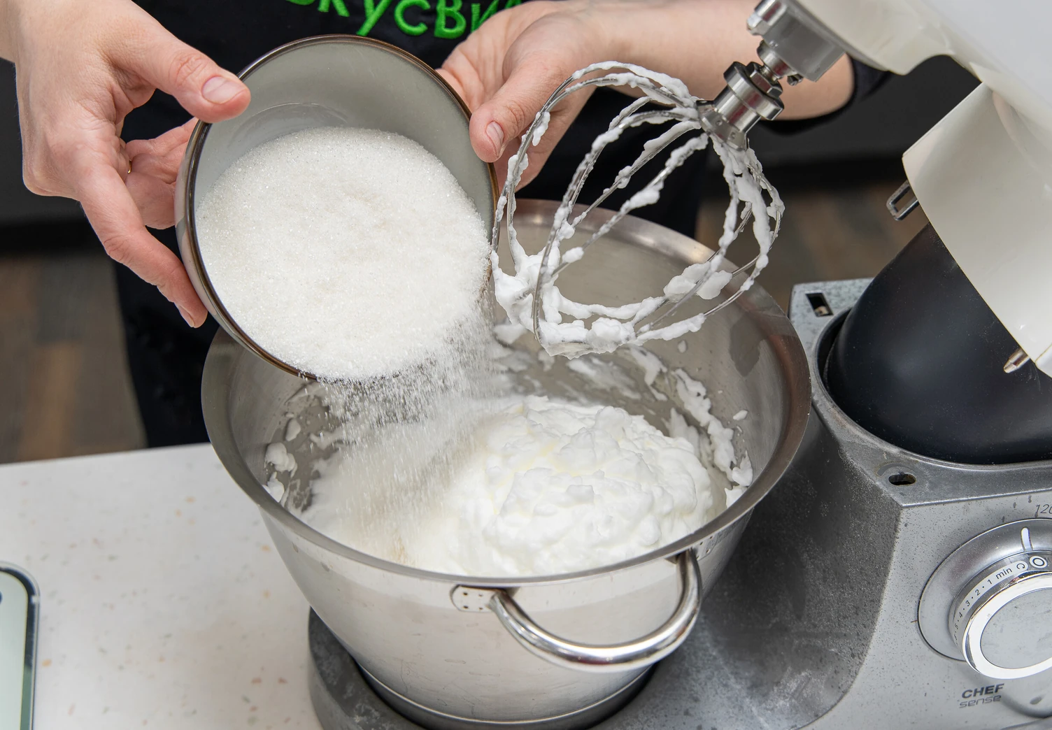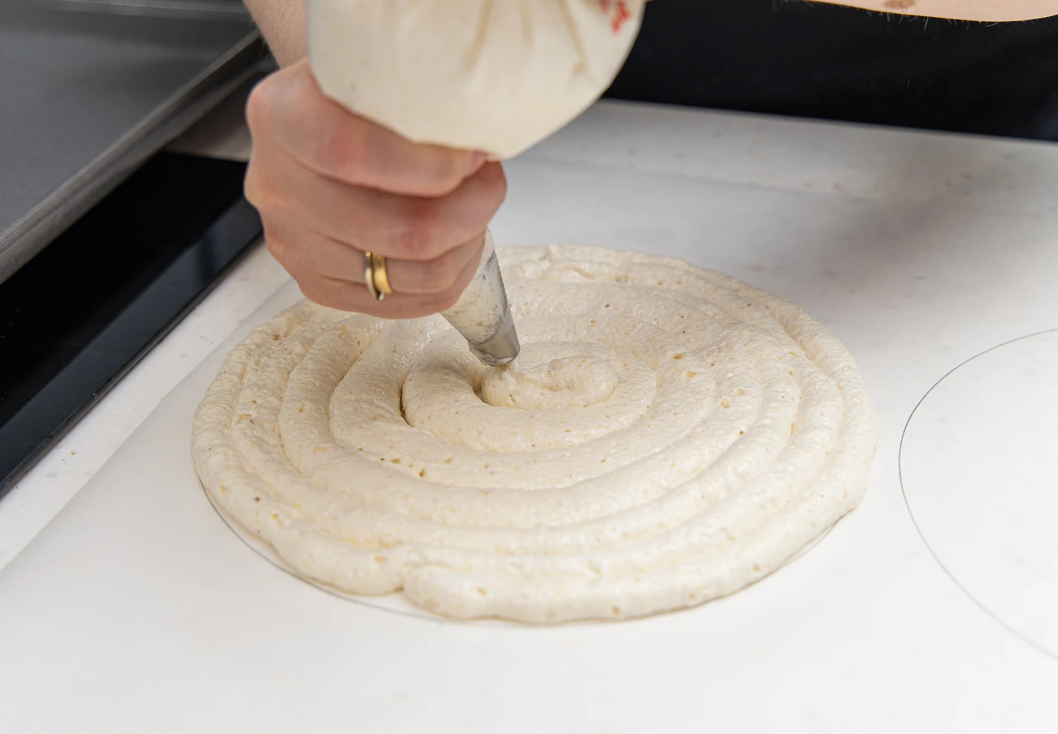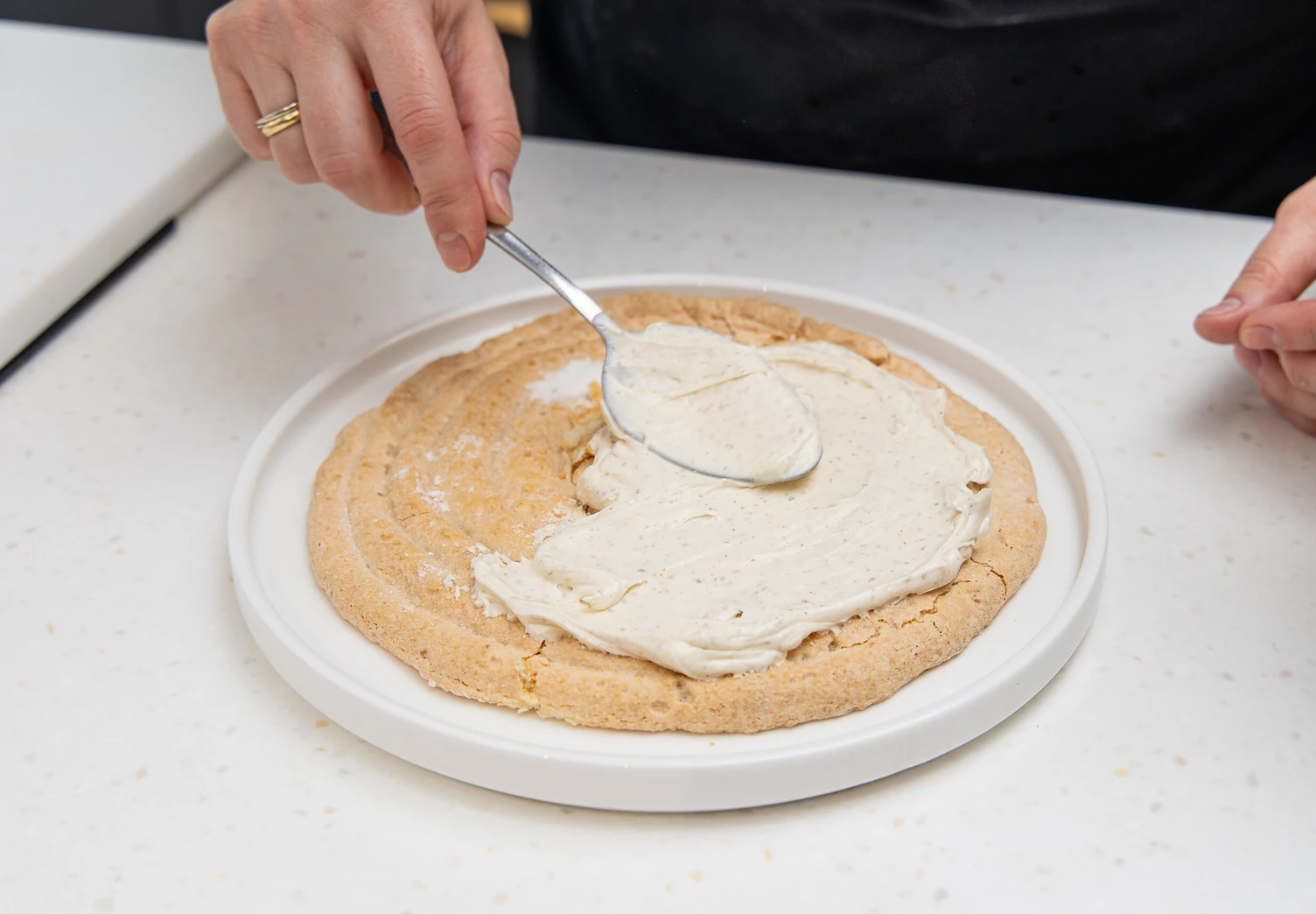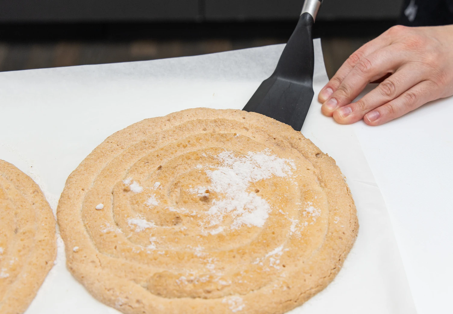 Выпекайте коржи при 170°C примерно 25 минут до готовности. Горячие коржи аккуратно снимите с противня и дайте им полностью остынуть. Они станут тверже — это нормально.