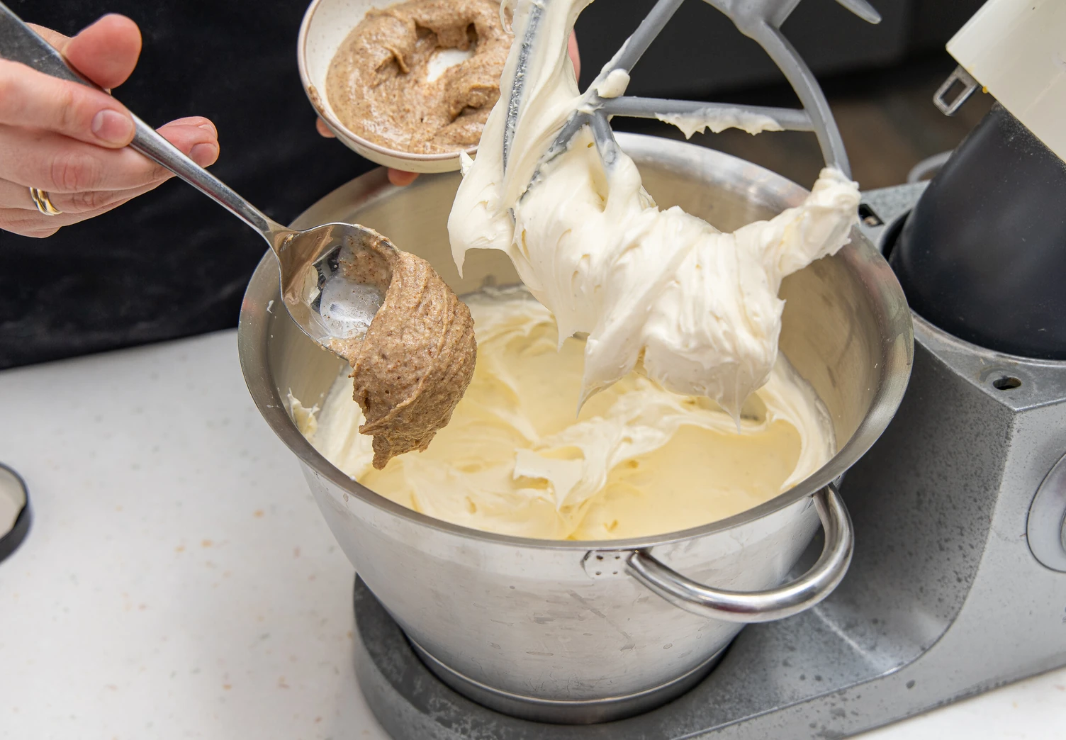 Верните всю смесь в сотейник на огонь. Постоянно помешивая, доведите до кипения и загустения. Переложите горячий крем в чашу миксера и взбивайте на небольшой скорости, пока он не остынет до комнатной температуры. Не прекращая взбивать, постепенно добавляйте мягкое сливочное масло. После каждой порции дожидайтесь его полного соединения с кремом. В итоге крем станет гладким и плотным.