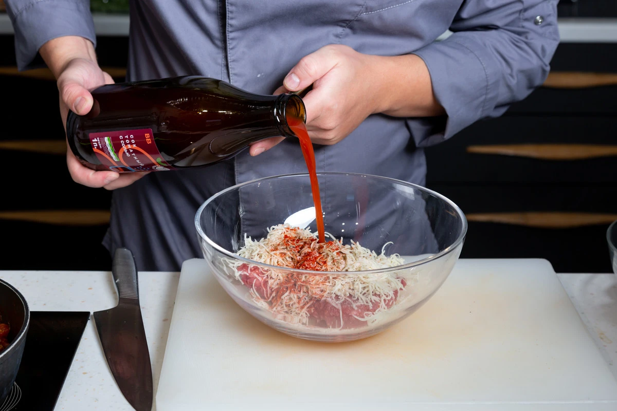 В рецепте используются товары из категорий: Мясо, птица; Колбаса, сосиски, деликатесы; Масла, соусы, специи, сахар и соль; Индилавка: вкусы мира; Сыры; Напитки