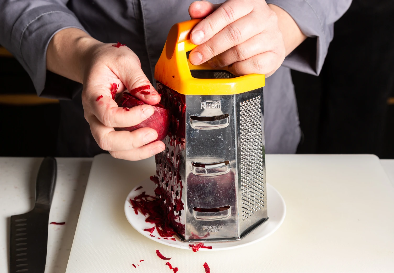 Для розовых яиц натрите свёклу на крупной тёрке.