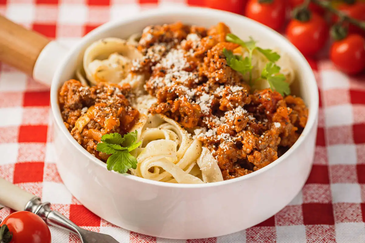Классический рецепт пасты по-болонски предполагает долгое приготовление соуса, мы же предлагаем более быстрый вариант.