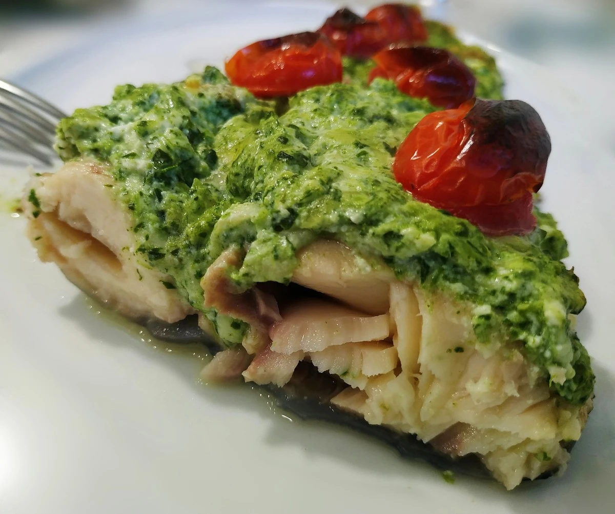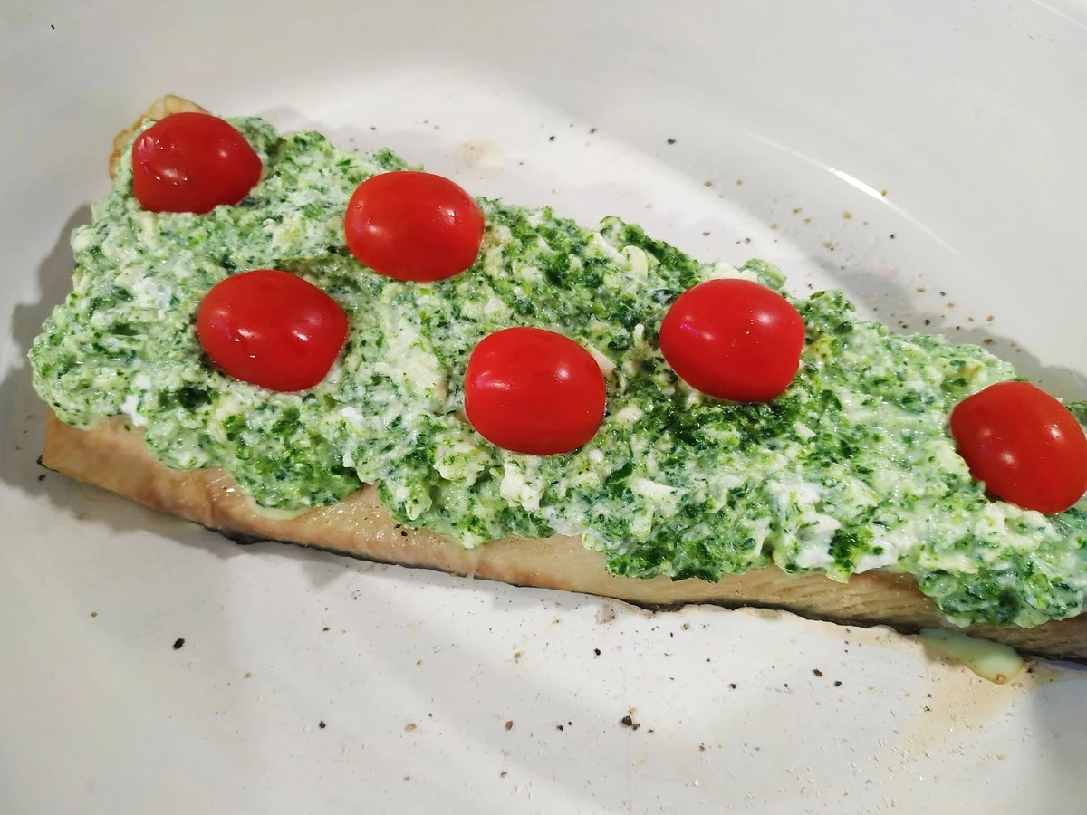 Филе сома под сырно-шпинатной шубкой