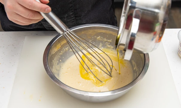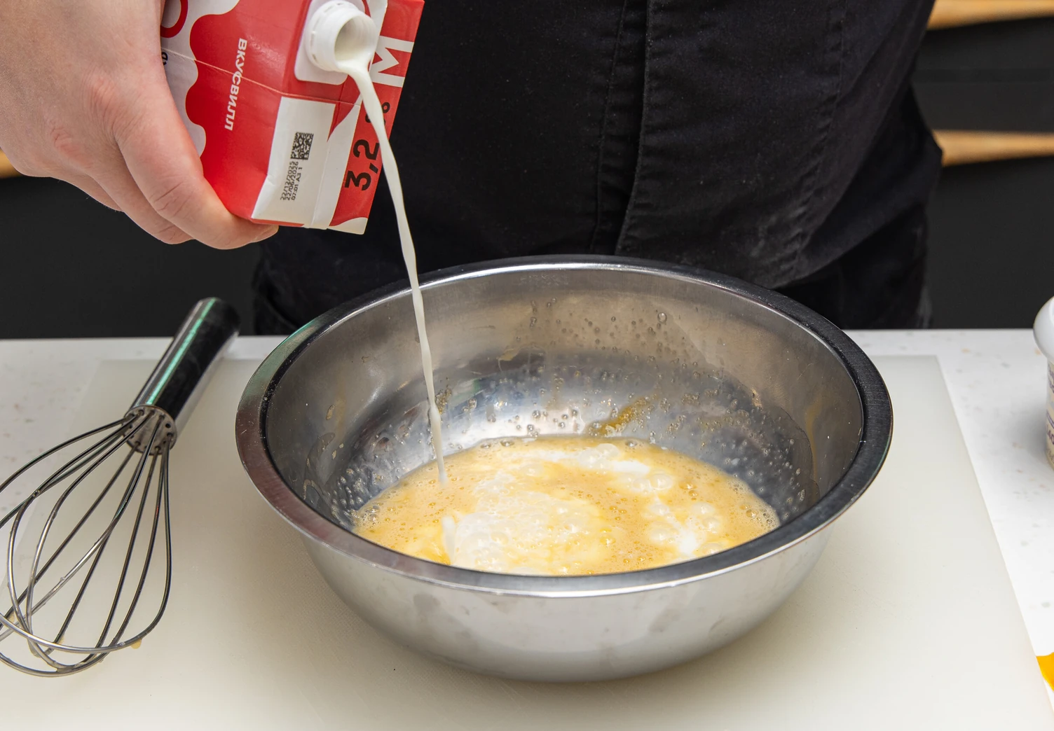 Добавьте соль, молоко.