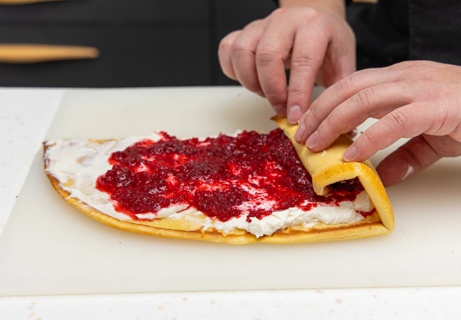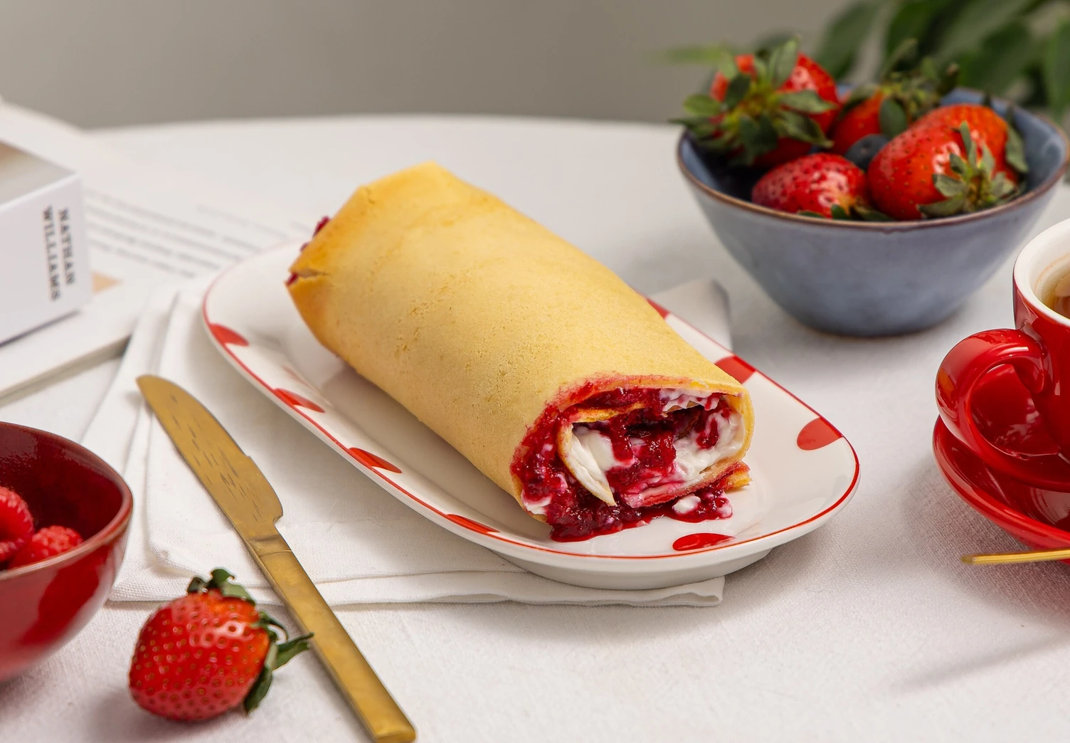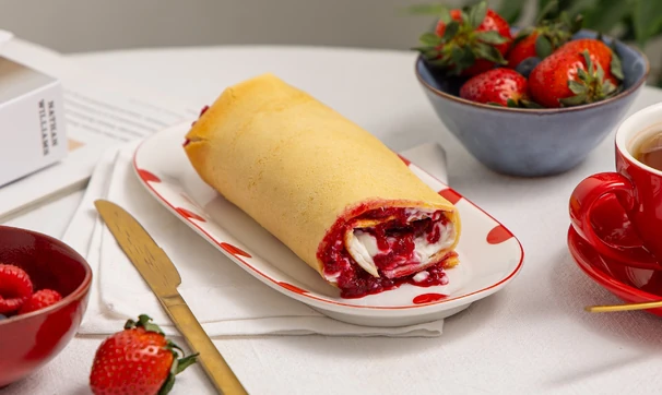 Знакомьтесь: паннукакку — финский блин, который пекут, а не жарят. Внутрь этого блинного рулета можно завернуть что угодно: от ветчины и сыра до взбитых сливок и ягод. Мы приготовили сладкую версию паннукакку, а вы можете выбрать свою идеальную начинку.