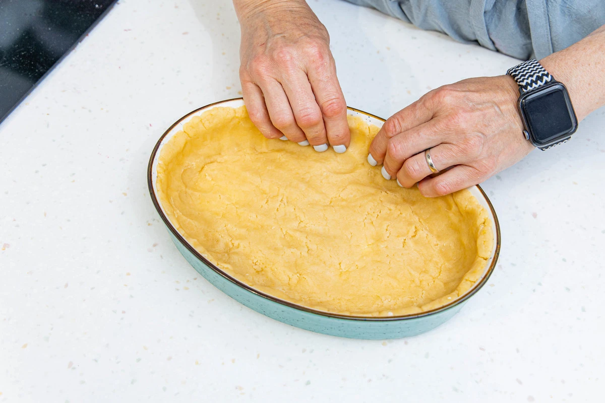 Распределите тесто в форме для выпечки и уберите в холодильник на 15 минут.