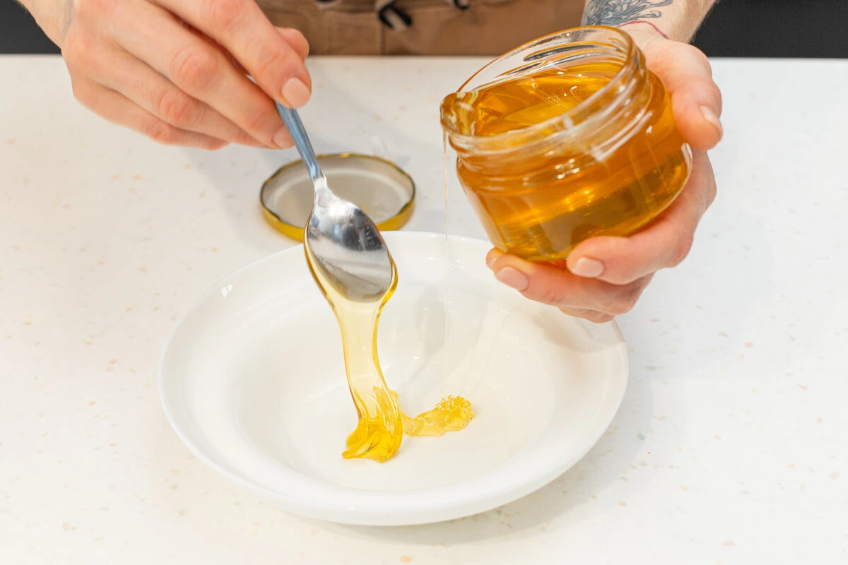 Пока варится капуста, помойте ягоды. Сделайте заправку: налейте в мисочку мёд и добавьте 1-2 ч. л. сока лимона, перемешайте.