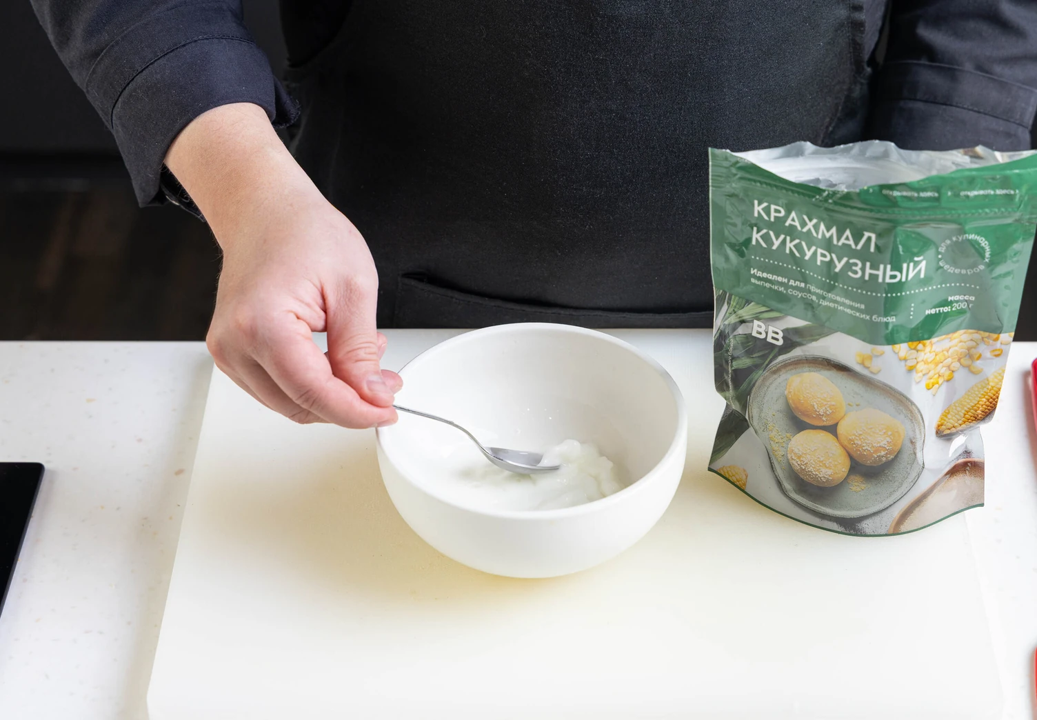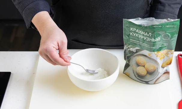 Разведите крахмал в 1–2 чайных ложках холодной воды.