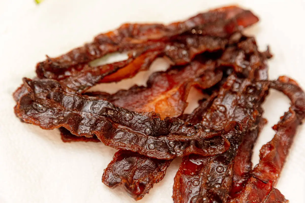 Бекон выложите на противень и запекайте при 160 °C в духовке до хруста, примерно 30 минут (прибавьте их ко времени приготовления). Этот шаг можно пропустить, если не планируете добавлять бекон.