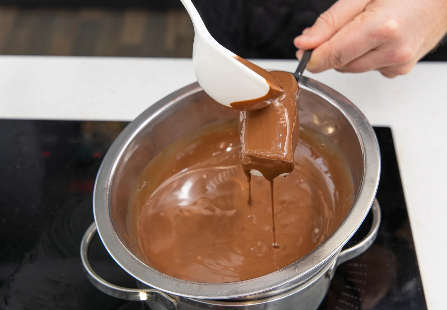 Смешайте шоколад с растительным маслом и растопите на водяной бане или короткими импульсами по 10–15 секунд в микроволновке. Если хотите, чтобы глазурь при укусе хрустела, возьмите масло какао вместо растительного.