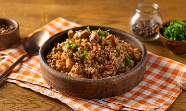 В старину на Руси гречка с луком была едой крестьян, а мясо — привилегией богатых. Купцы придумали соединить одно с другим, и получилось блюдо, которое мы любим до сих пор. Гречка по-купечески: с сочной румяной свининой, овощной зажаркой и зеленью. Забирайте рецепт, чтобы порадовать близких.