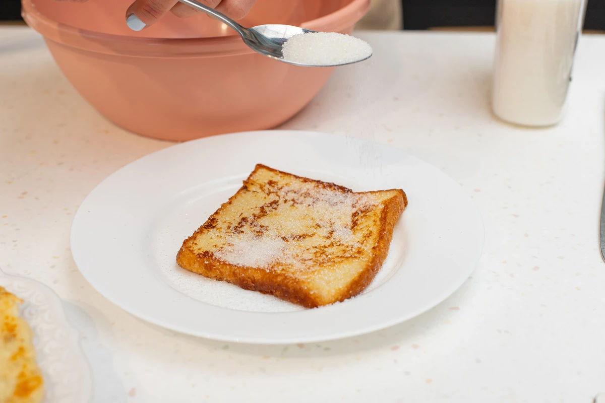 Жарьте с двух сторон до румяной корочки. Горячие гренки посыпьте сахаром.