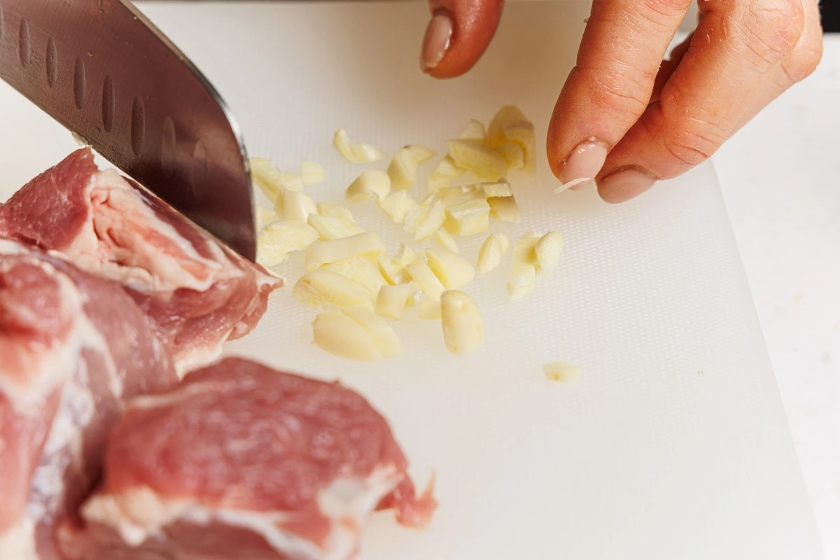 Чеснок нарежьте кусочками среднего размера.