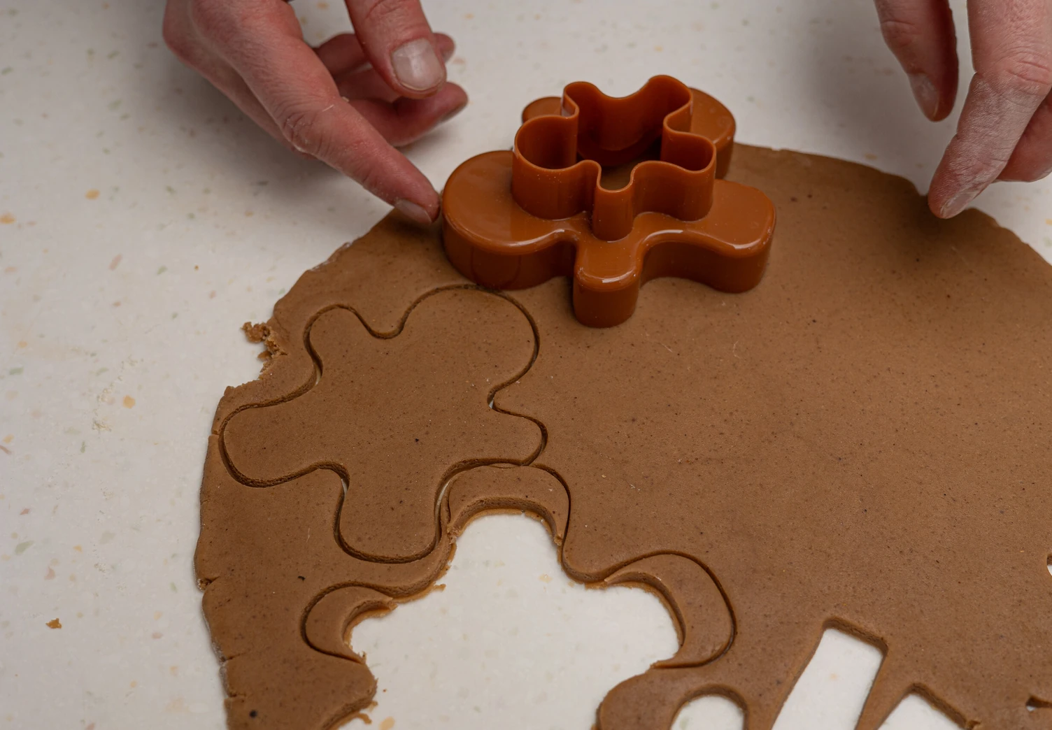 С помощью формы для пряничных человечков вырежьте печенье.