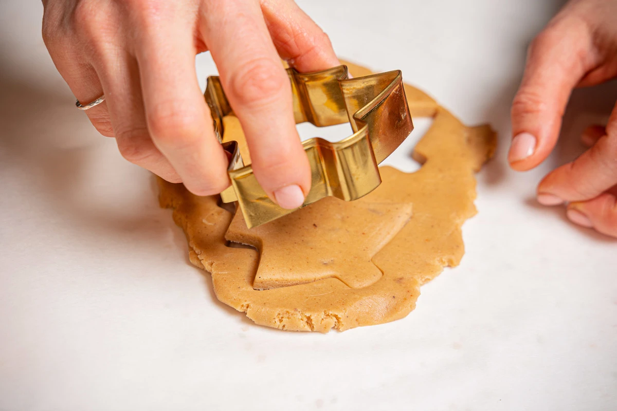 Вырежьте пряники нужной формы. Соберите оставшееся тесто, снова раскатайте в пласт и вырежьте пряники. И так пока не израсходуете всё тесто.