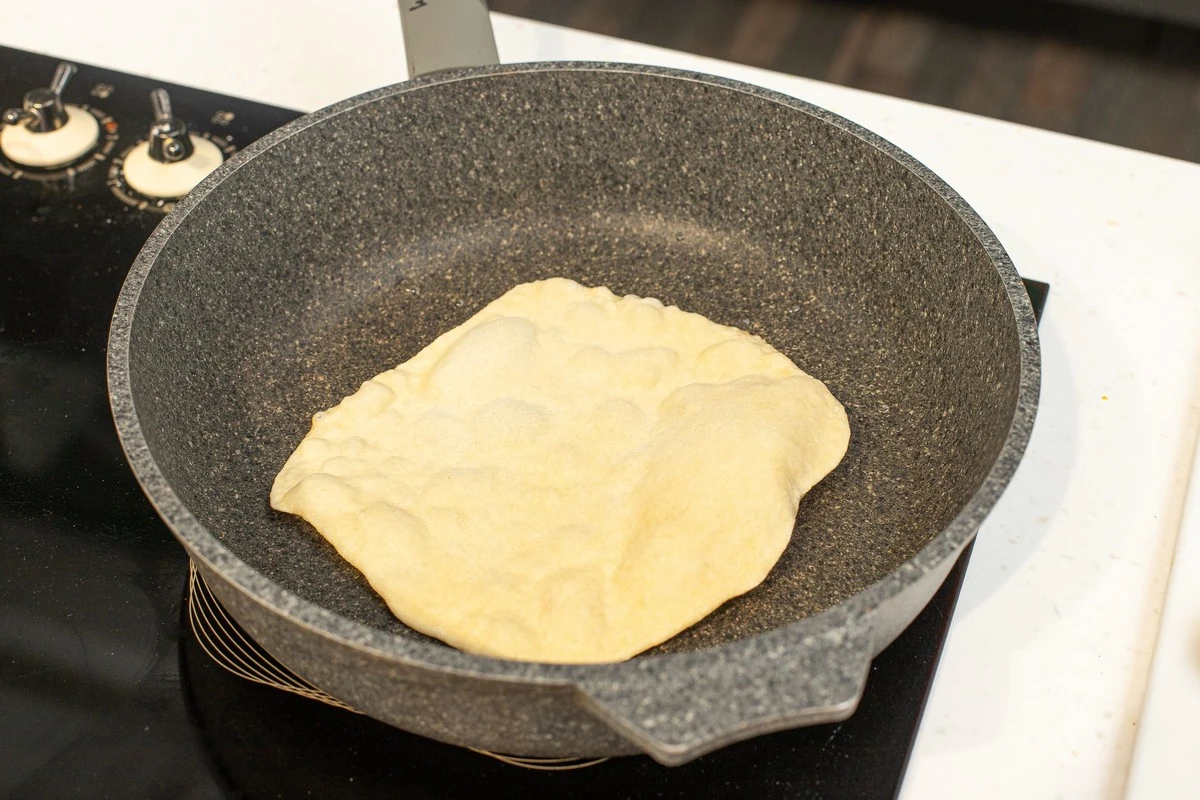 Разогрейте сковороду с 1 ч. ложкой растительного масла и жарьте лепёшку по 2 минуты с каждой стороны на среднем огне. Повторите для всего теста.