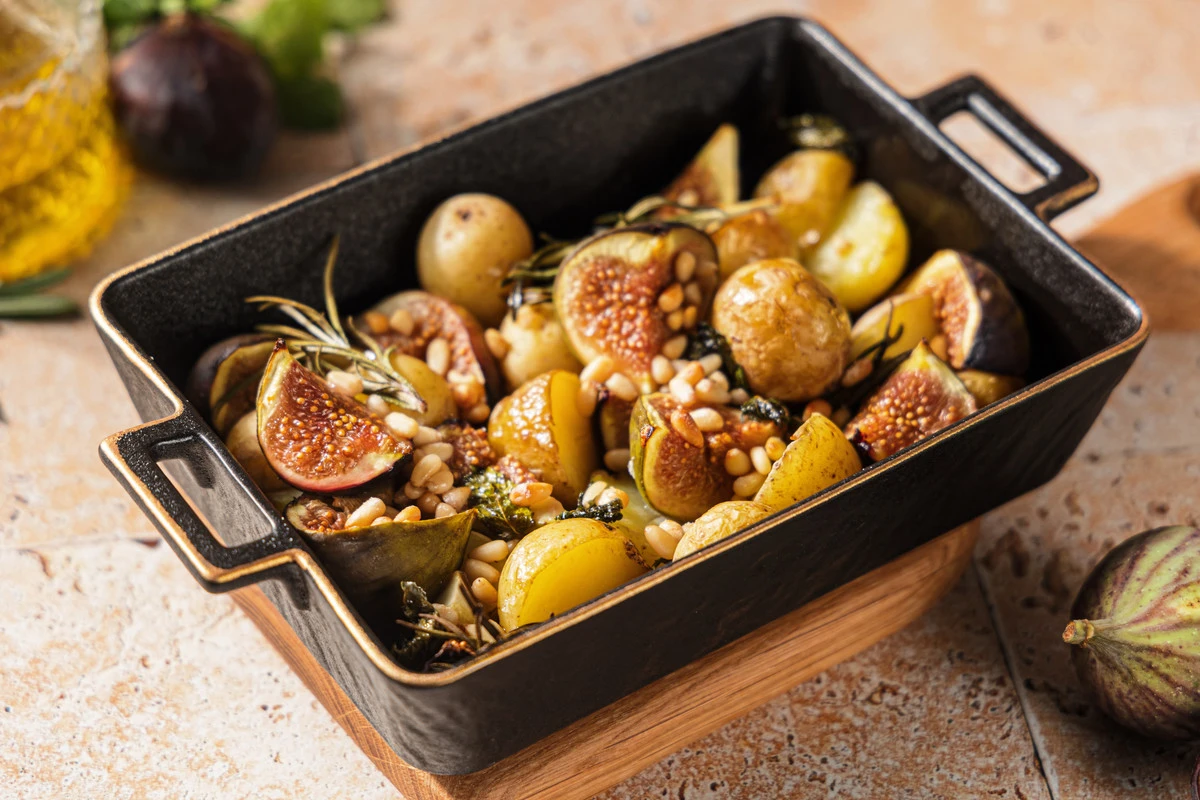 Запечённый инжир с картофелем может быть как самостоятельным блюдом, так и гарниром, например, к стейкам из рыбы. Разнообразьте ваше меню, экспериментируйте, пробуйте необычные сочетания.