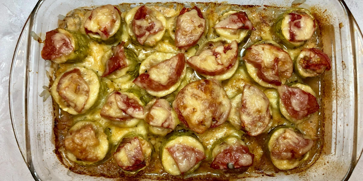 Этим рецептом с нами поделилась Анна Алиева-Хрусталёва, главный редактор медиапроекта «Про фудшеринг» и вице-президент крупнейшей в России фудшеринговой организации «Банк еды “Русь”». Этот рецепт хорош по двум причинам: блюдо безумно вкусное и оставляет минимум пищевых отходов в процессе приготовления. Кабачок не придётся даже чистить, а мякоть можно добавить в фарш.
