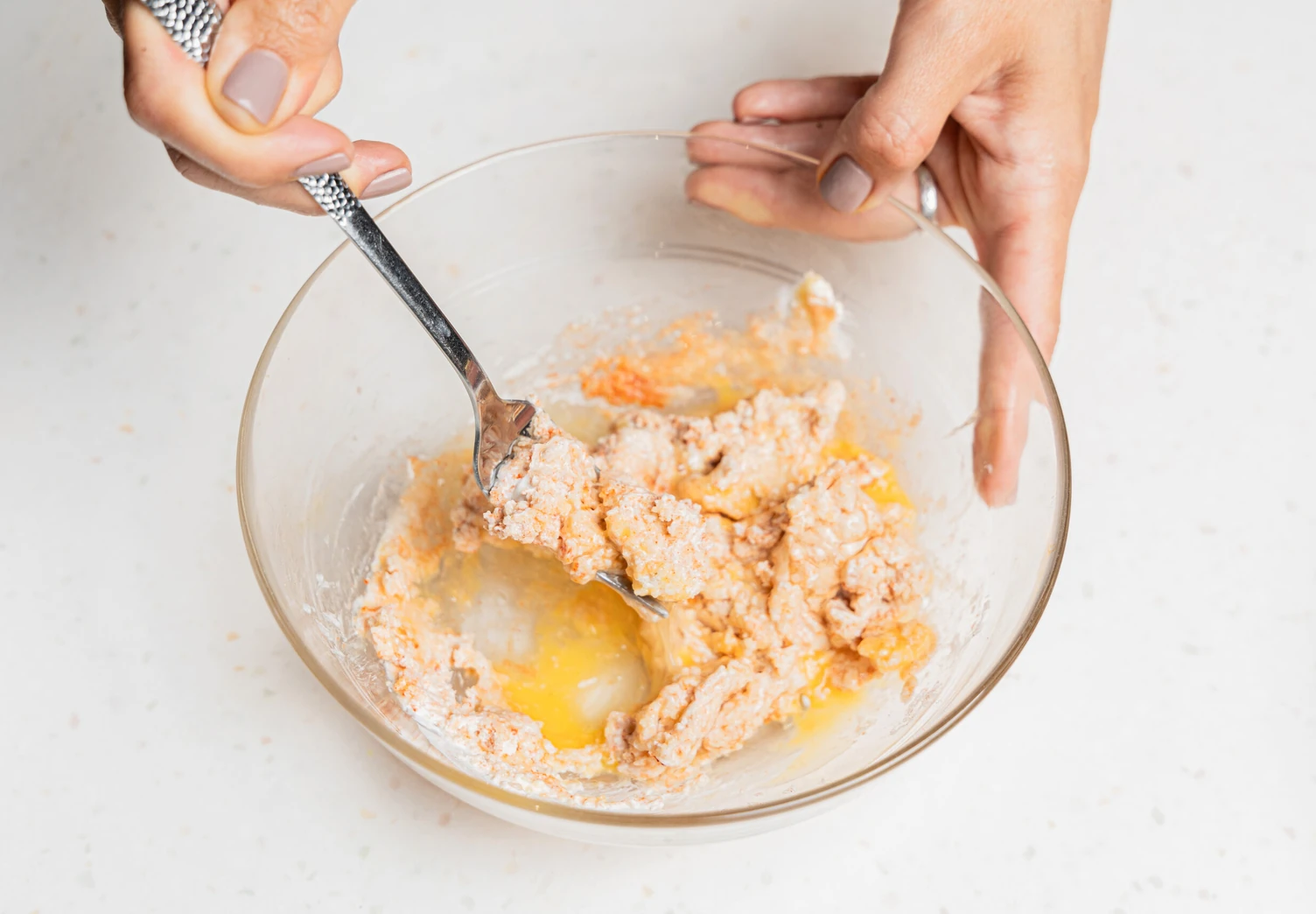 Смешайте сметану, соль, паприку, пропущенный через пресс чеснок и сухари. Добавьте яйцо.