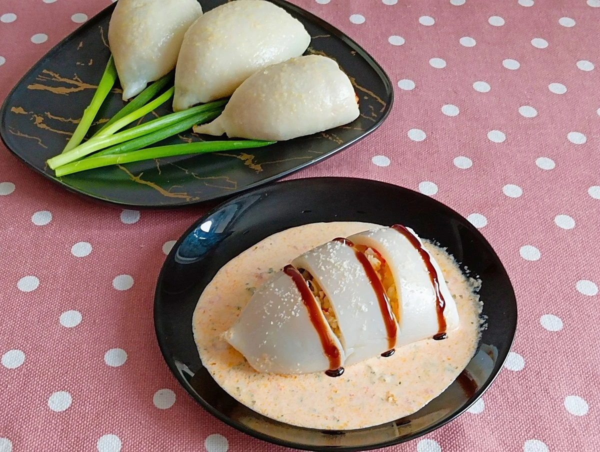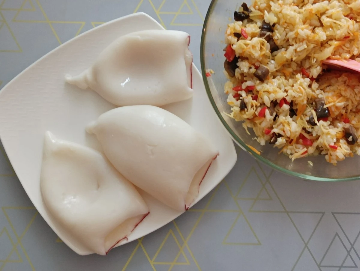 Рецепт «Кальмары, фаршированные грибами, рисом и сыром»