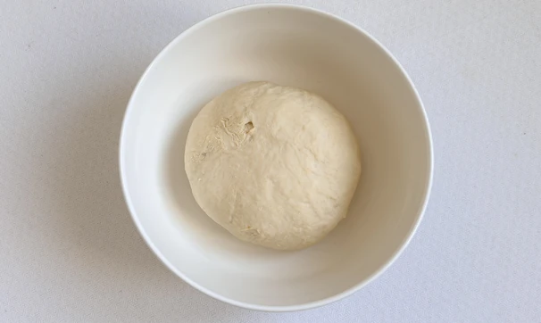 Для теста в миске смешайте тёплую воду, сахар, дрожжи, соль, оливковое масло, муку. Накройте тесто и поставьте в тёплое место на 1 час.