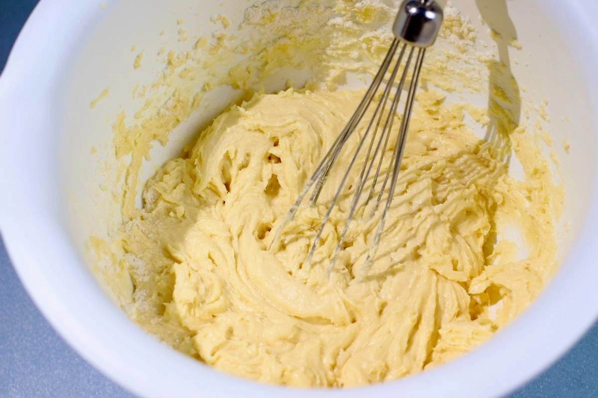 Добавьте яйца, тщательно перемешайте. Всыпьте сухие ингредиенты и замесите однородное тесто.