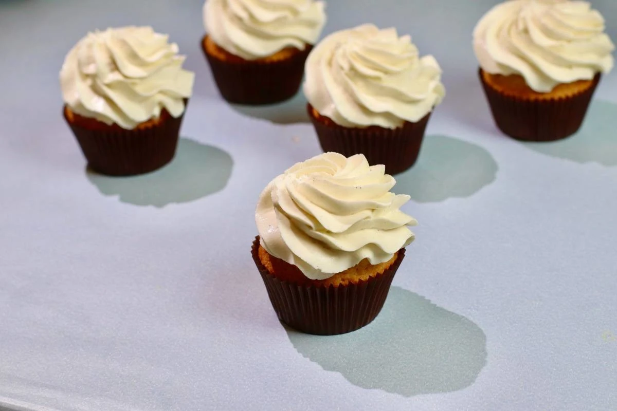 Отсадите крем на остывшие кексы. Капкейки готовы!