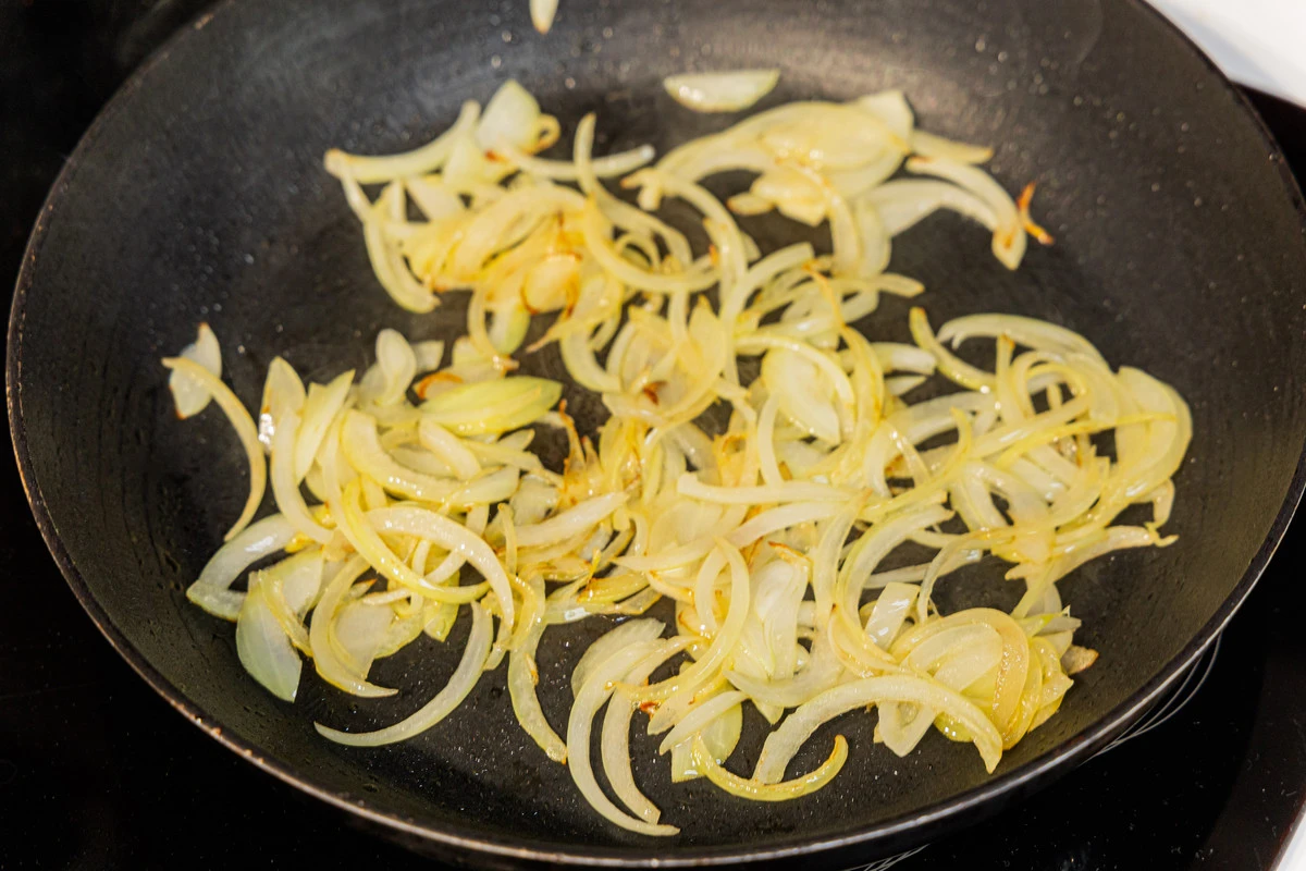 Разогрейте сковороду с 2-3 ст. ложками масла, выложите лук и чеснок и готовьте на среднем огне до золотистого цвета (примерно 3-5 минут).