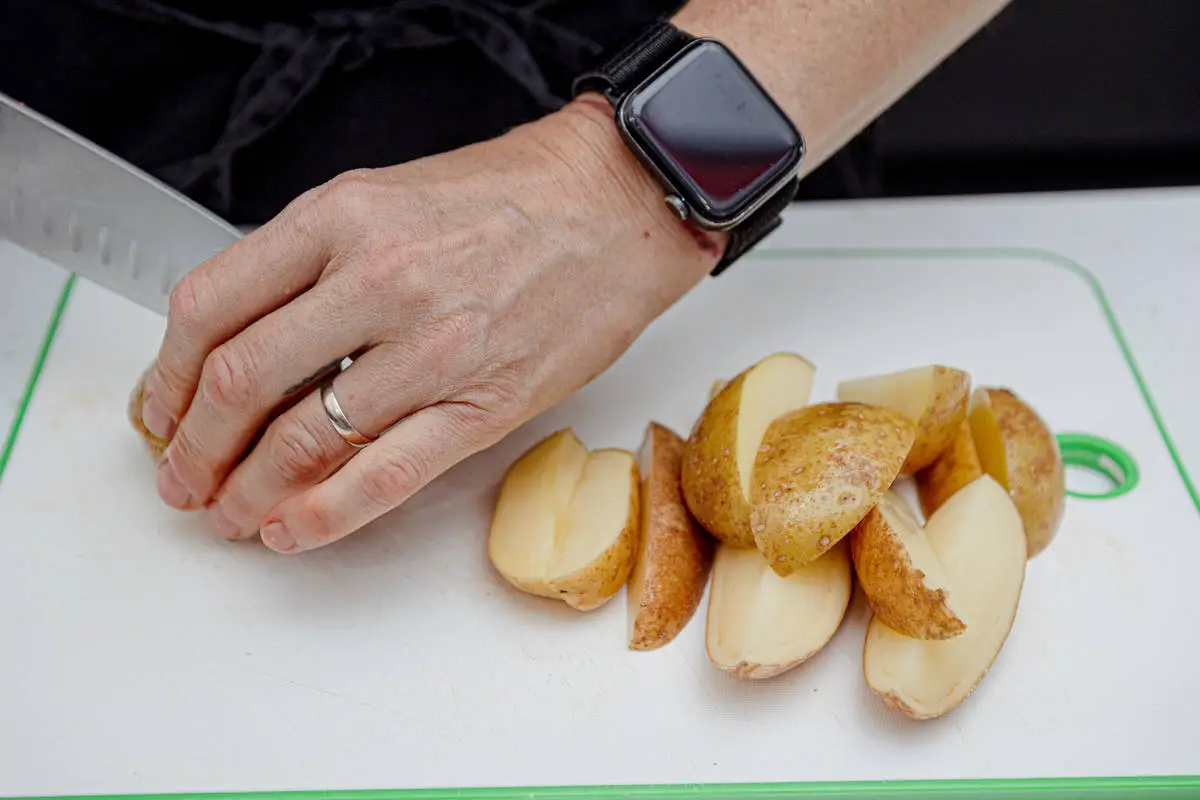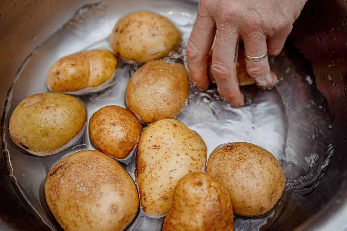 Картофель тщательно вымойте с жёсткой щеткой, не очищайте от кожуры.