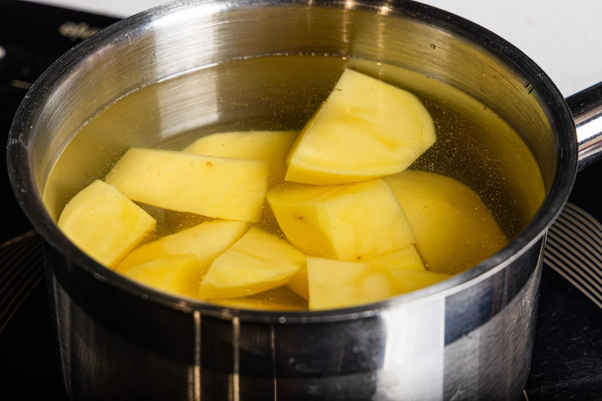 Картофель почистите и отварите до готовности в течение примерно 20 минут.