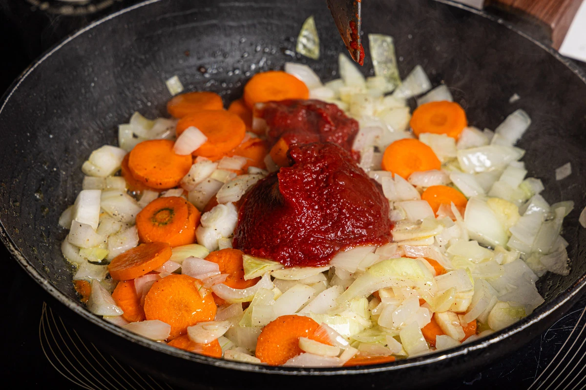Добавьте томатную пасту.