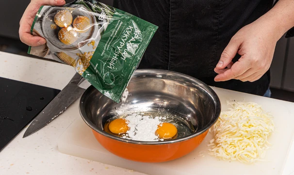 Сбрызните основу слегка маслом, посыпьте специями и отправьте на 20 минут в духовку, разогретую до 180 °C.