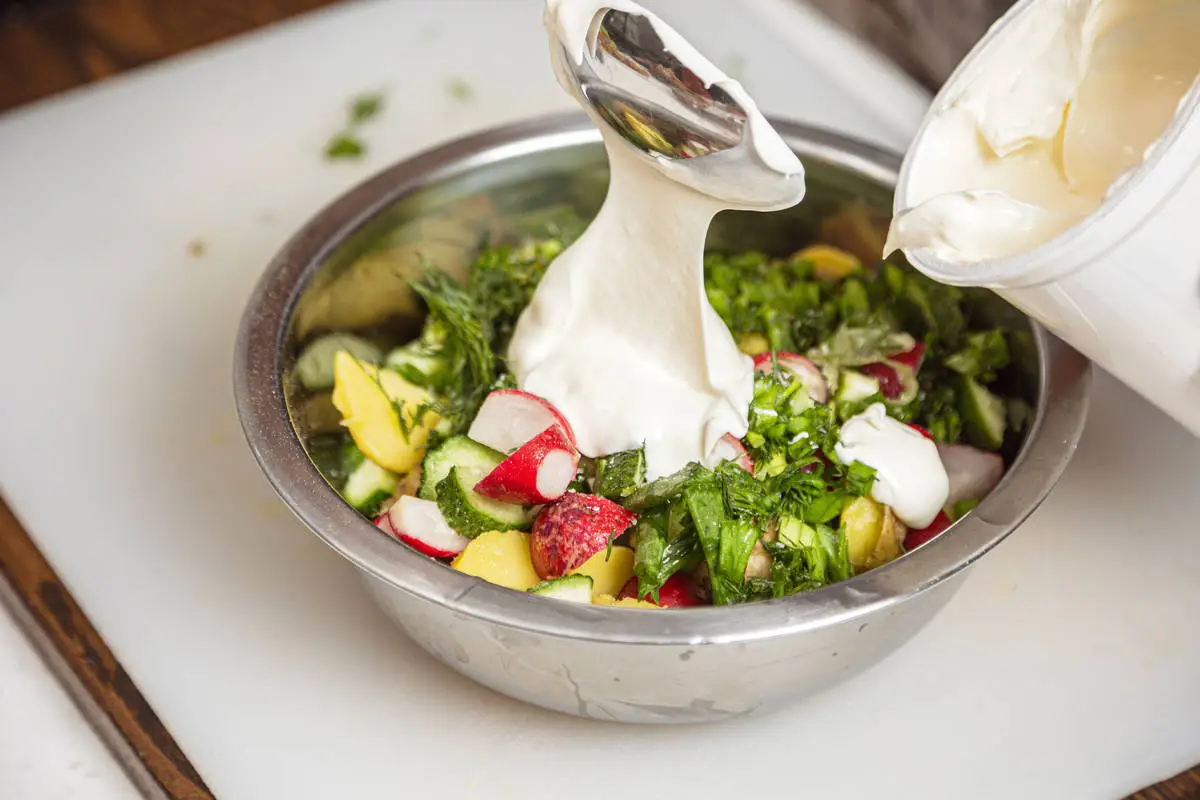 В рецепте используются товары из категорий: Овощи, фрукты, ягоды, зелень; Масла, соусы, специи, сахар и соль; Молочные продукты, яйцо