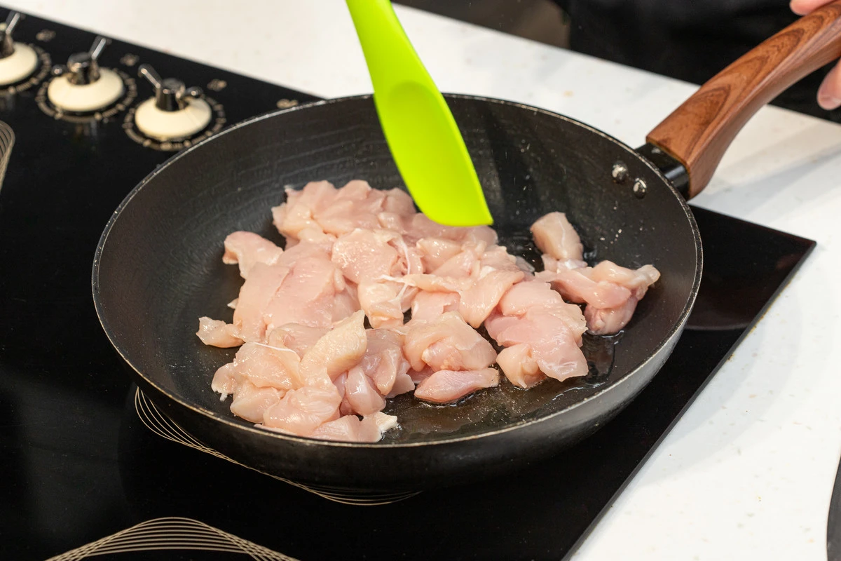 Выложите куриное филе на раскалённую сковороду, смазанную растительным маслом. Жарьте до появления золотистой корочки.