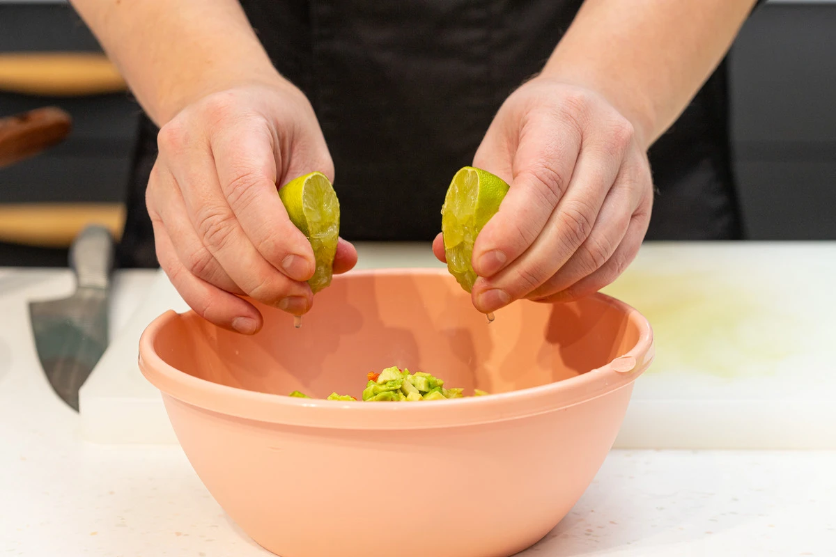 Выдавите сок лайма в смесь, чтобы предотвратить потемнение гуакамоле.