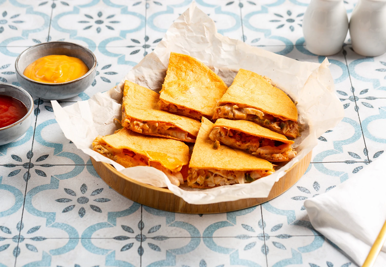 Запеките кесадилью в микроволновке в течение 2–3 минут.