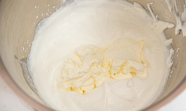 Взбейте холодные сливки с эритритолом до плотной, устойчивой массы.