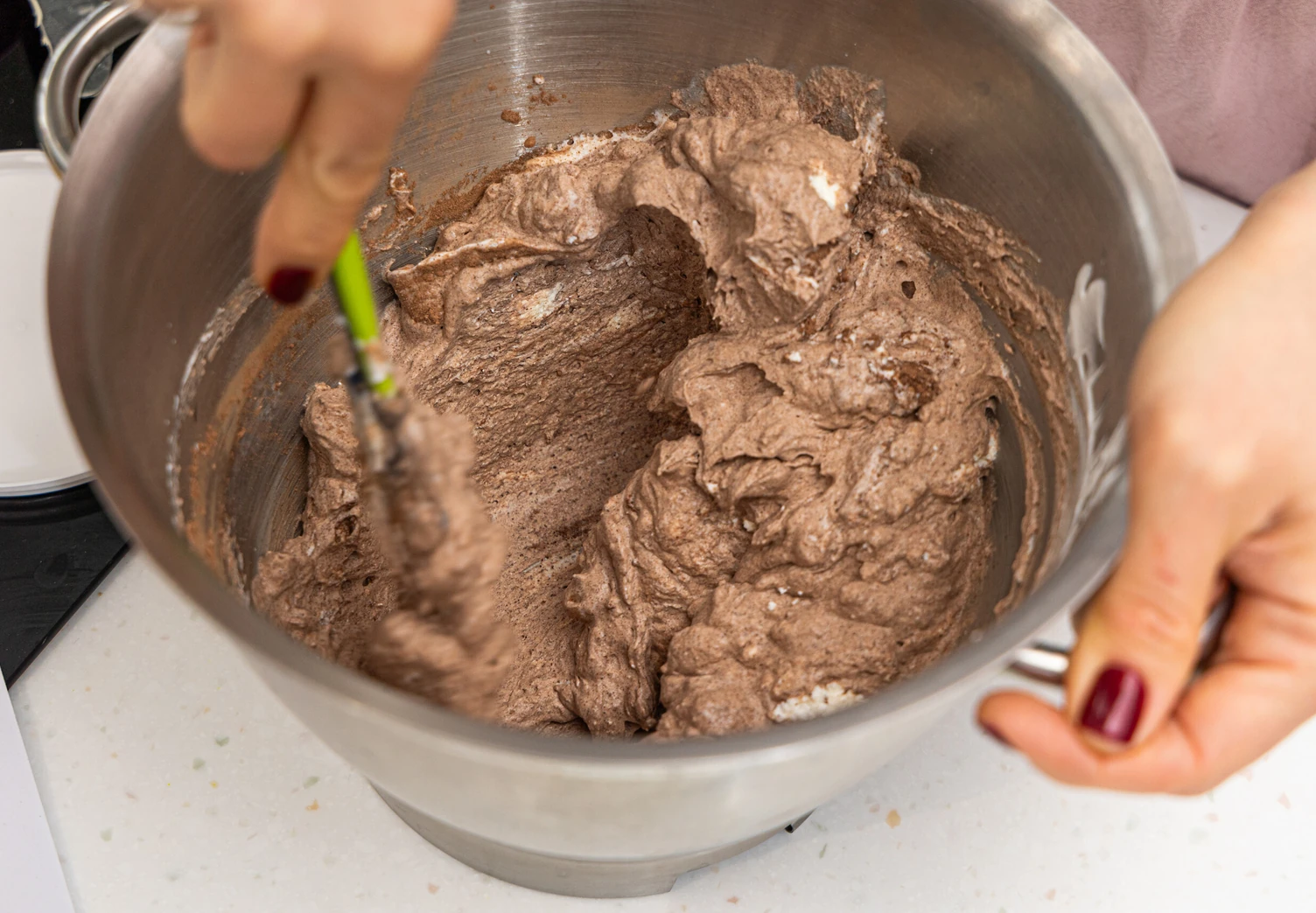Аккуратно смешайте полученную массу с маскарпоне и какао.
