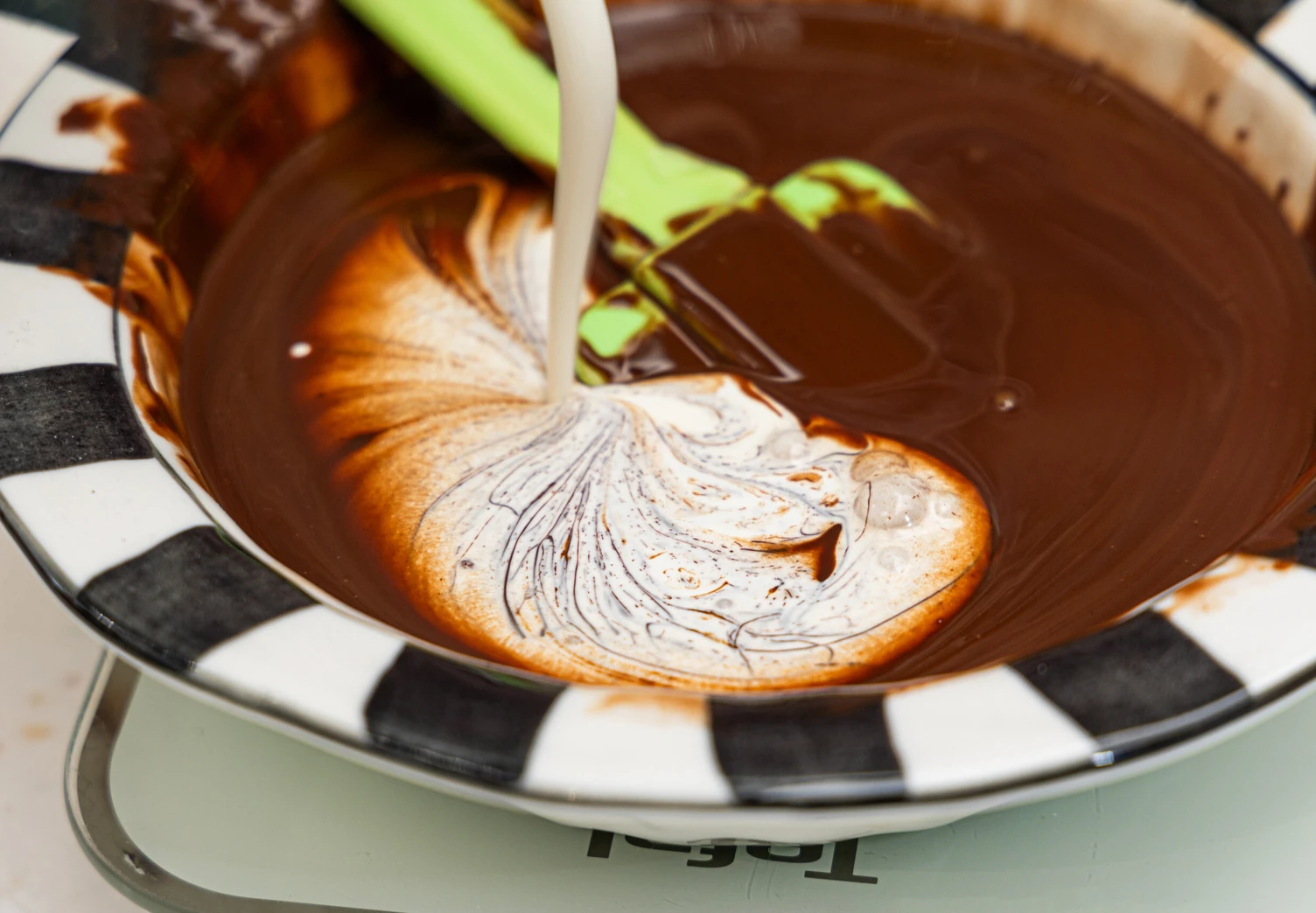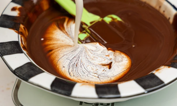 Добавьте сливки комнатной температуры и тщательно перемешайте ингредиенты до однородности.
