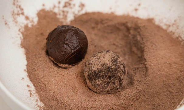 Порой полезная версия десерта не уступает, а даже выигрывает у классической. Особенно если это бархатные трюфели из тёмного шоколада по нашему рецепту. Для любителей смелых сочетаний у нас есть совет: спрячьте внутри каждого шарика крошечный кусочек сыра с голубой плесенью. Его солоноватая пикантность раскрывает вкус шоколада с совершенно новой, неожиданной стороны.
