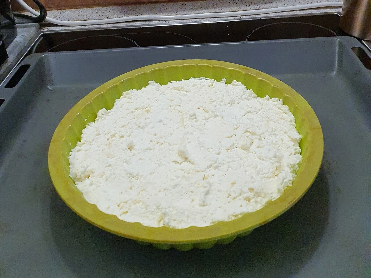 Замесите тесто, соединив весь творог, 2 яйца, половину сыра (весь предварительно измельчите на крупной тёрке), муку, соду и соль. Если творог сухой, может быть достаточно и 60 г муки, если влажный, понадобится 80 г.