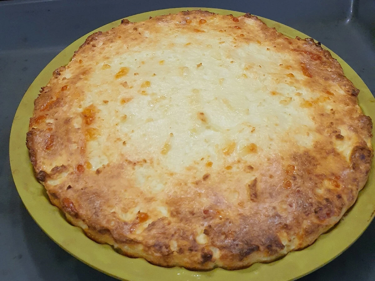 Выложите тесто в форму, смазанную растительным маслом. «На выходе получается две очень большие порции хачапури, — пишет Елена. — Можно взять три отдельные формочки поменьше, получится 3 нормальных порции, но тогда понадобится на 1 яйцо больше».