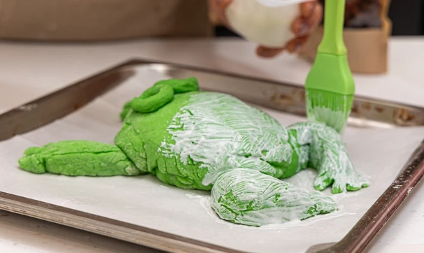 Смажьте жабу йогуртом, кефиром или взбитым яйцом.