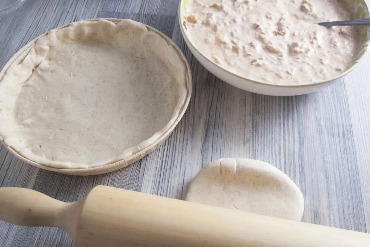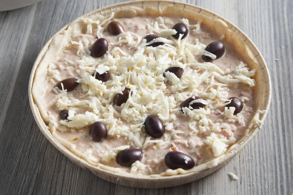 Киш с тунцом, томатами и маслинами