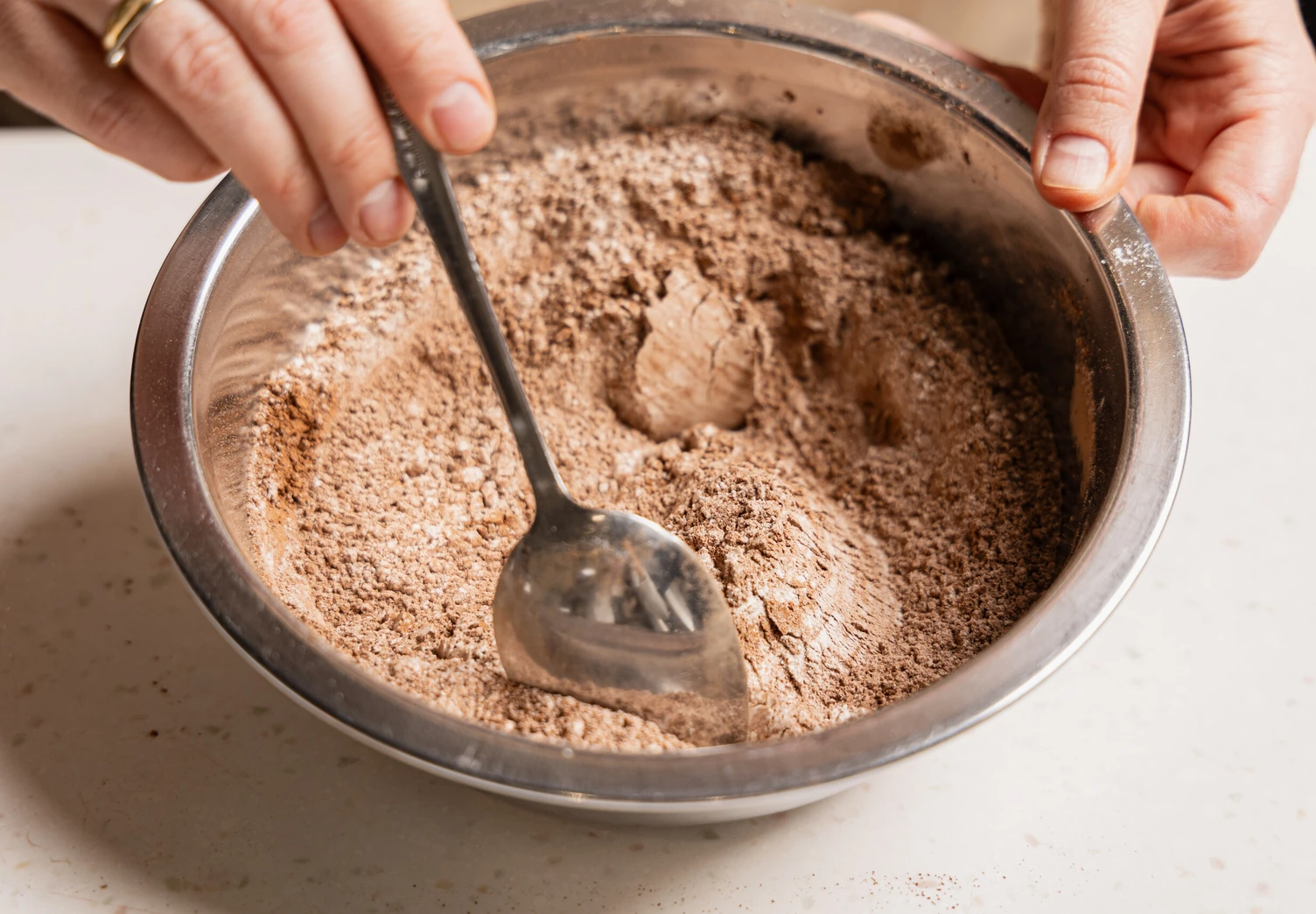 В отдельной ёмкости смешайте муку с какао до однородного состояния.