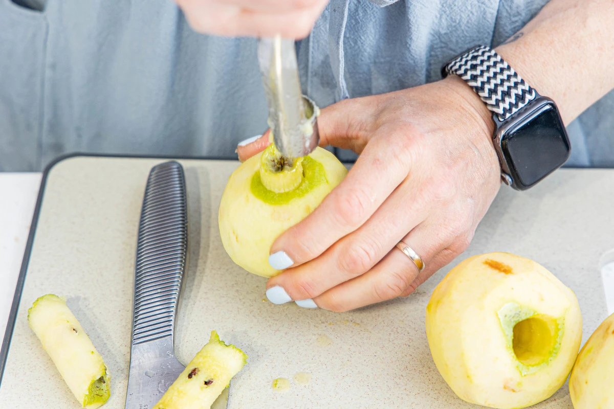 Яблоки очистите от кожуры и сердцевины, нарежьте ломтиками.