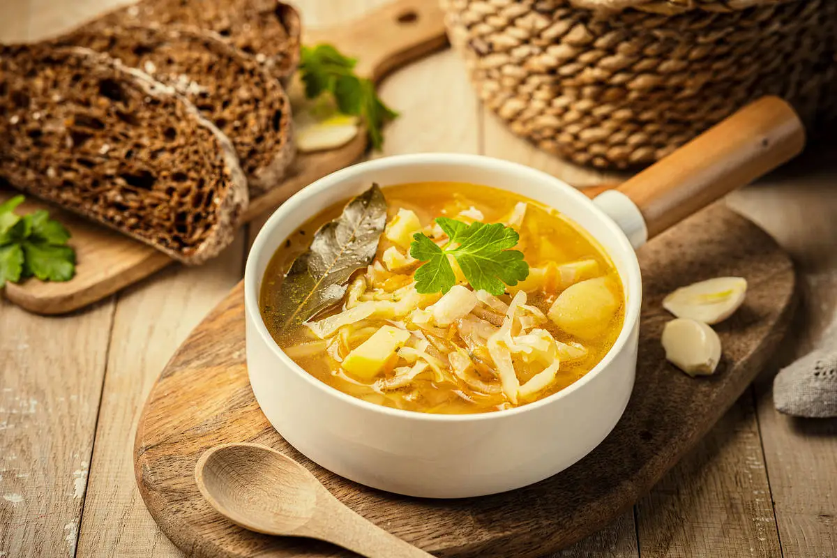 Иногда проще — значит лучше. Такие щи без мяса, грибов и других белковых добавок получаются лёгкими и свежими. Они не перегружают желудок и уместны в любое время года.