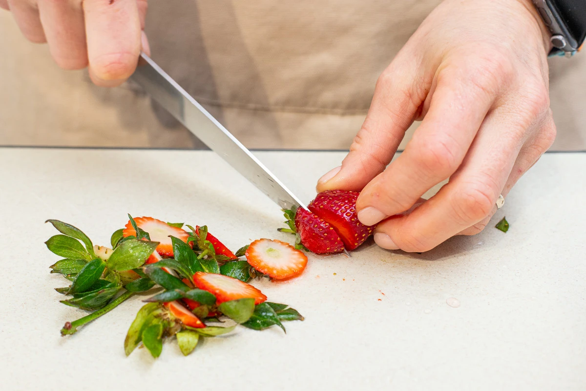 Клубнику помойте, переберите, отрежьте зелёные хвостики.
