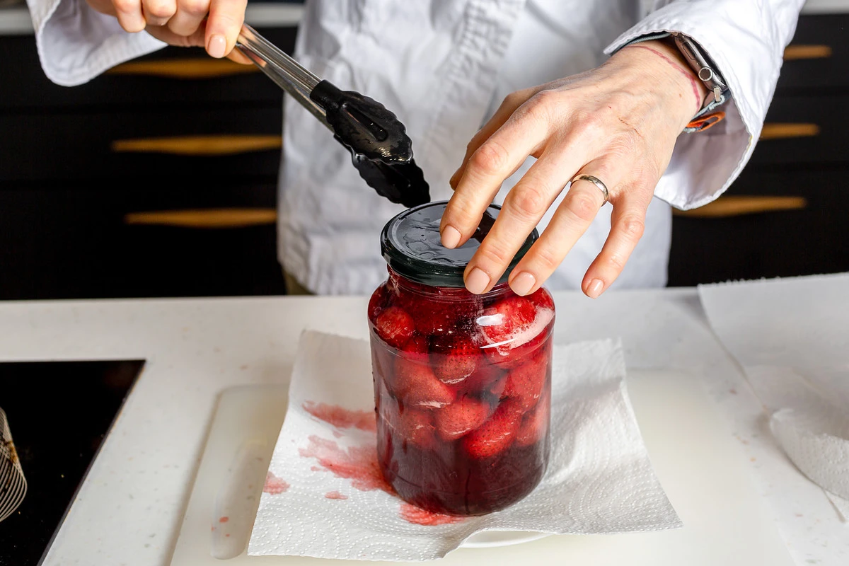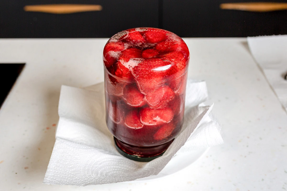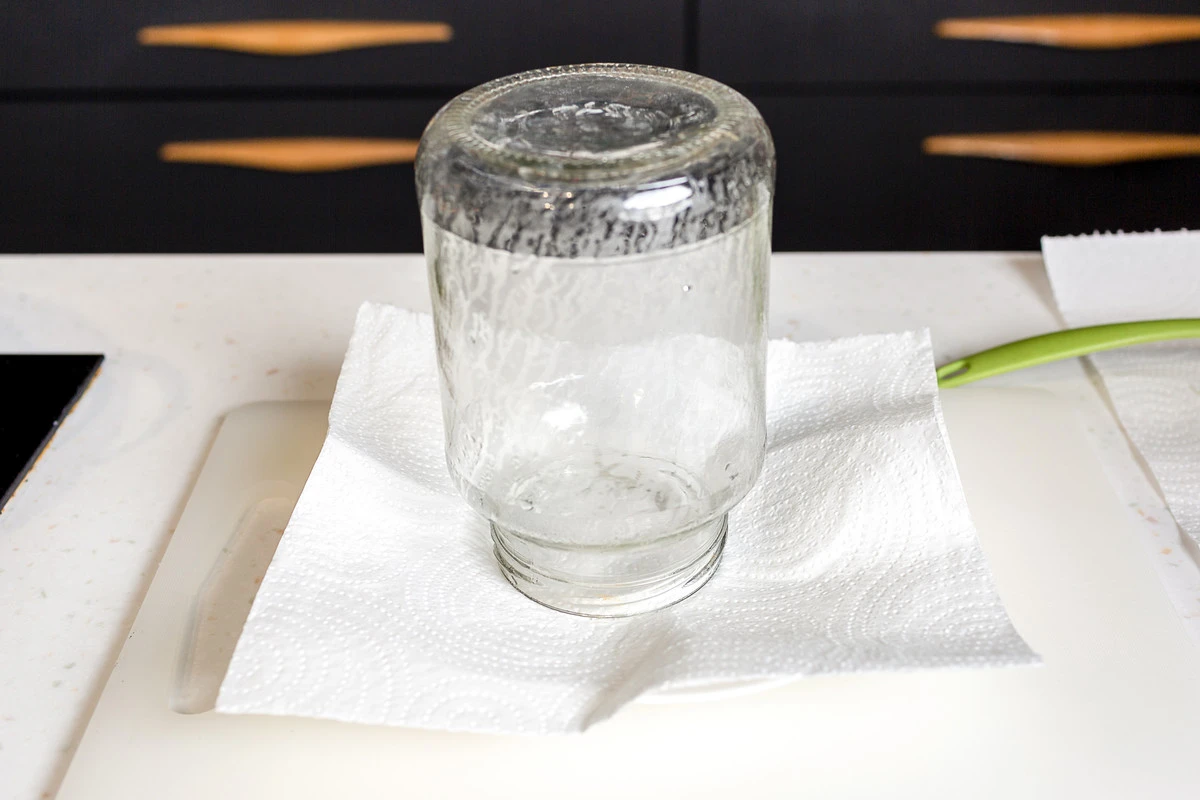 Простерилизуйте стеклянную банку и поставьте вниз горлышком на бумажную салфетку.