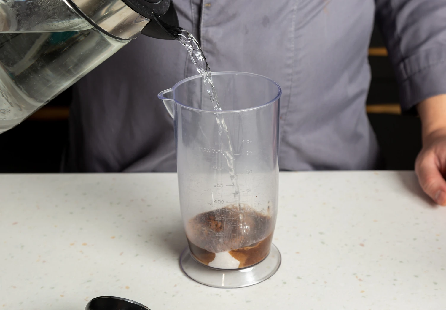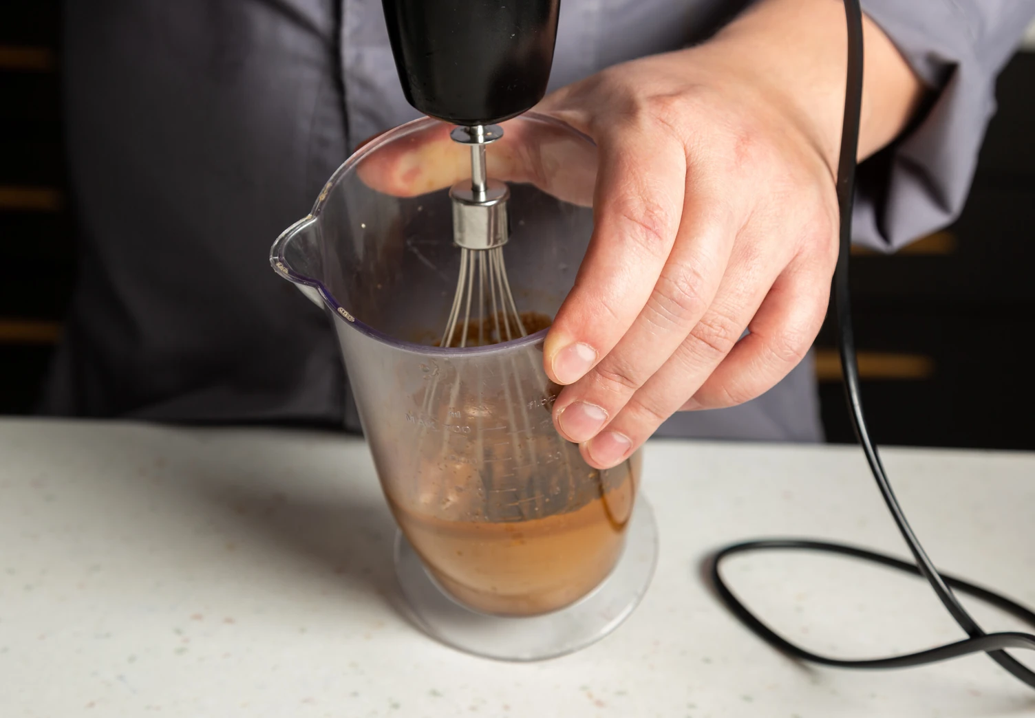 Взбейте миксером на высокой скорости до пышной светлой массы или в шейкере для коктейлей вместе со льдом.