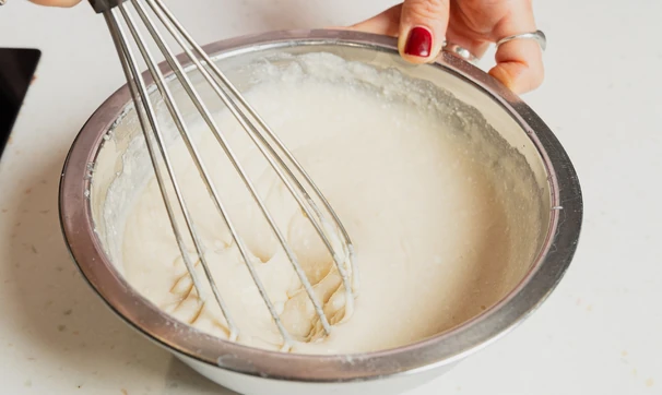 Оцените консистенцию: тесто должно получиться жидким, как обычное блинное. Если оно кажется вам слишком густым, добавьте ещё немного кокосового молока, если слишком жидким — чуть больше муки. Оставьте готовое тесто при комнатной температуре на 15 минут.